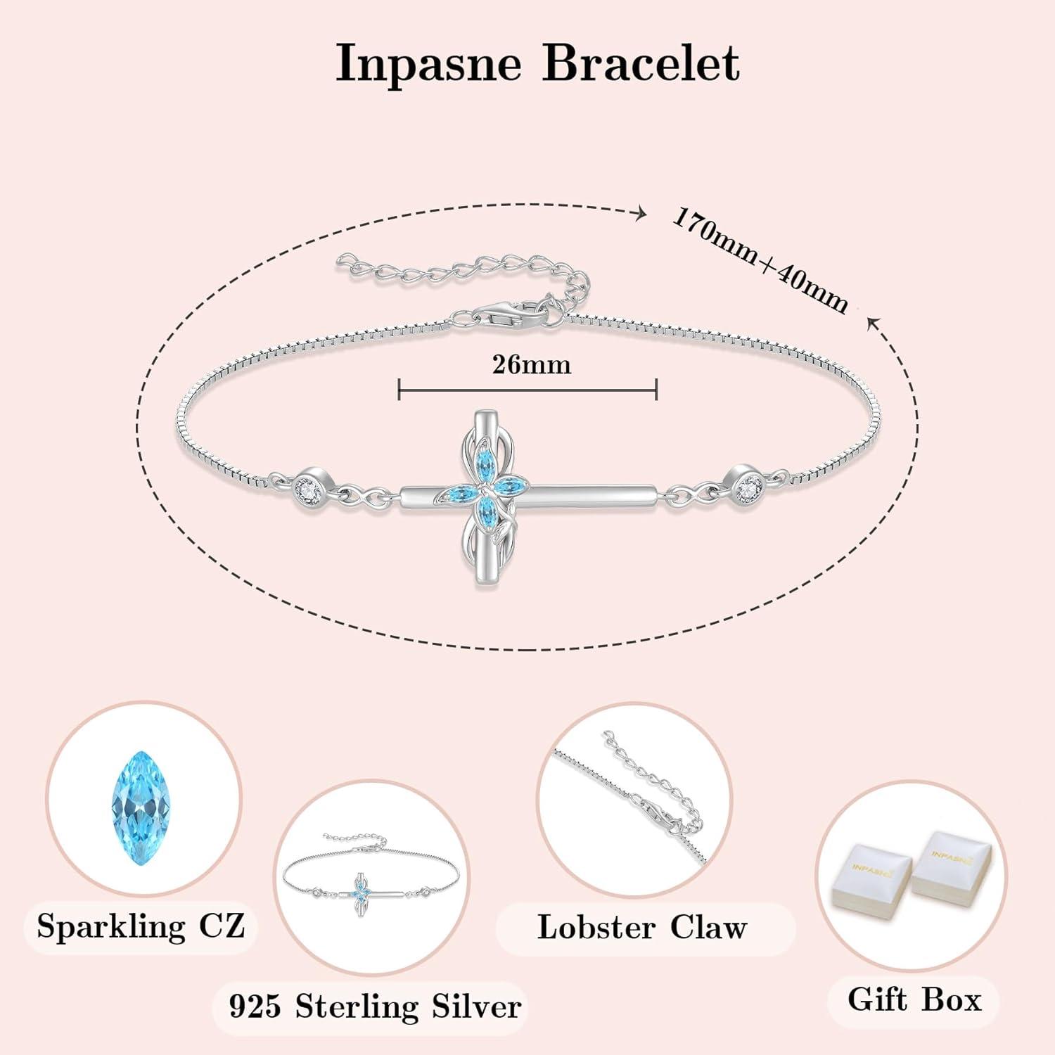 Cross Necklace and Bracelet for Women 925 Sterling Silver Infinity Butterfly Pendant Necklace Bracelet Aquamarine March Birthstone Jewelry Set Crucifix Religious Gifts for Her