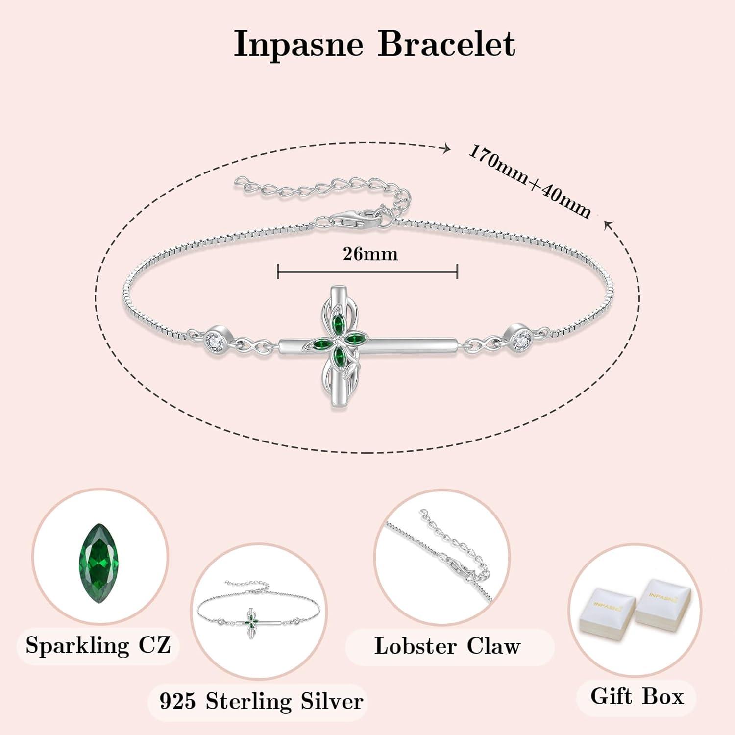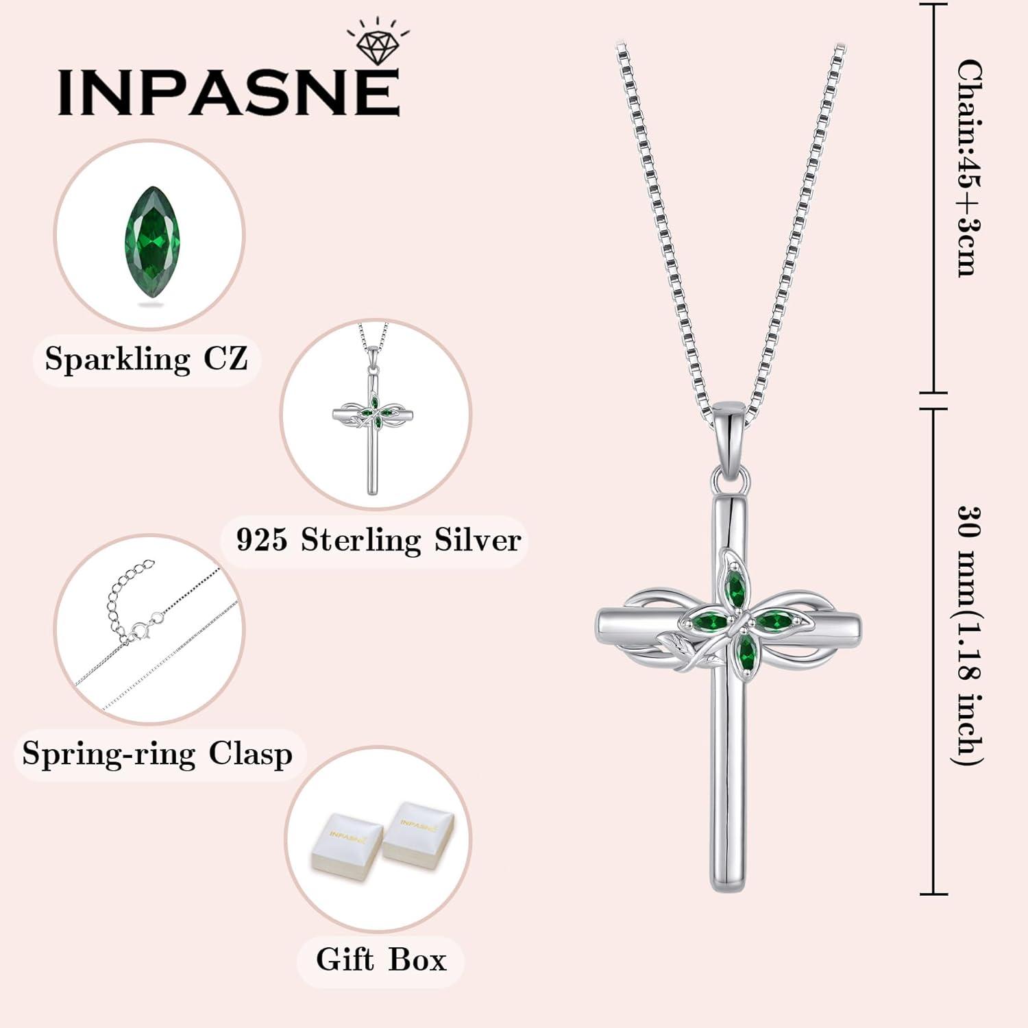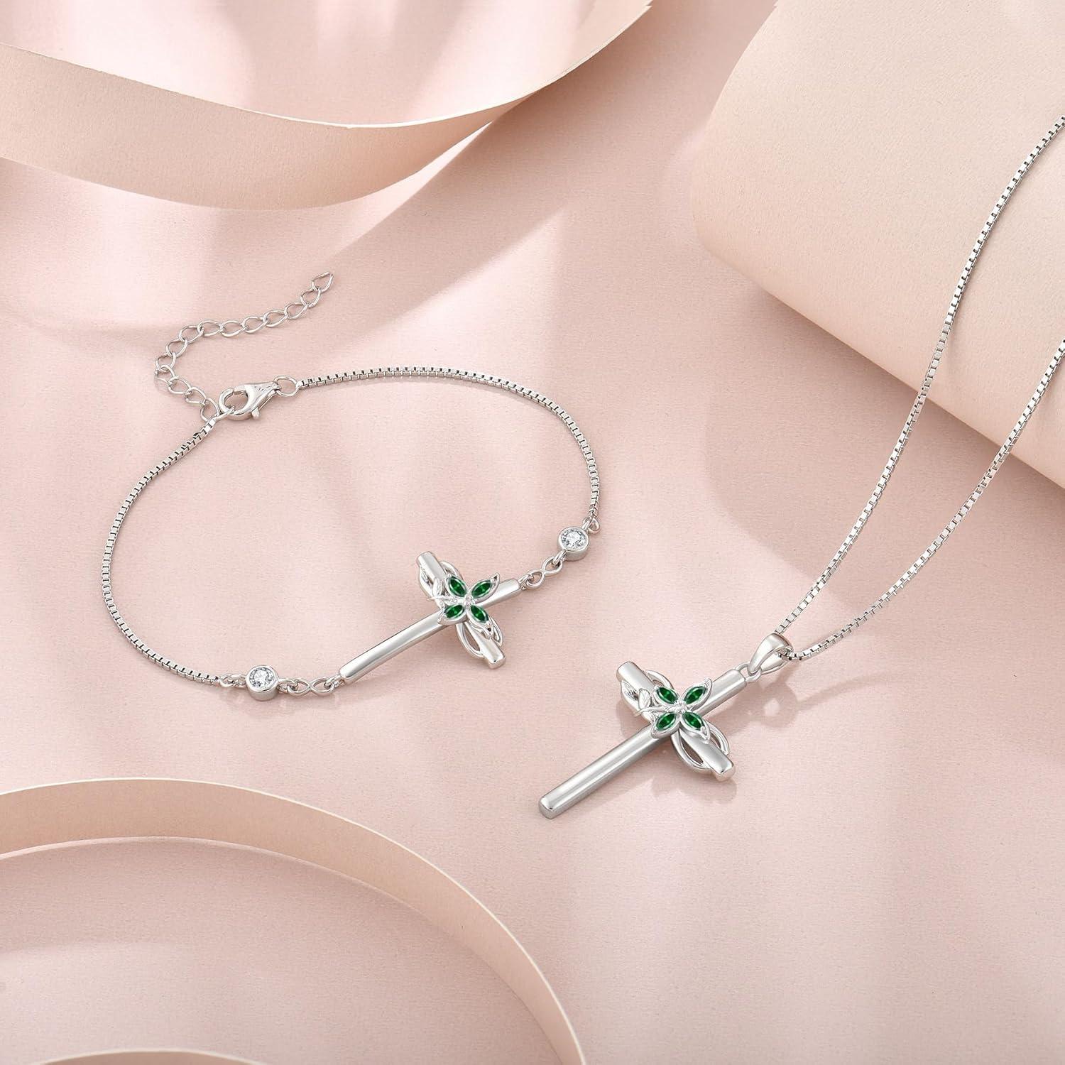 Cross Necklace and Bracelet for Women 925 Sterling Silver Infinity Butterfly Pendant Necklace Bracelet Emerald May Birthstone Jewelry Set Crucifix Religious Gifts for Her