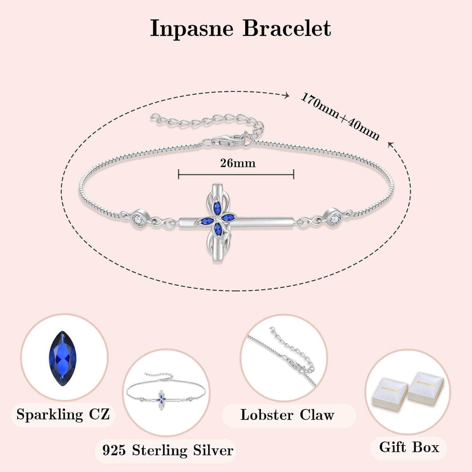 Cross Necklace and Bracelet for Women 925 Sterling Silver Infinity Butterfly Pendant Necklace Bracelet Sapphire September Birthstone Jewelry Set Crucifix Religious Gifts for Her