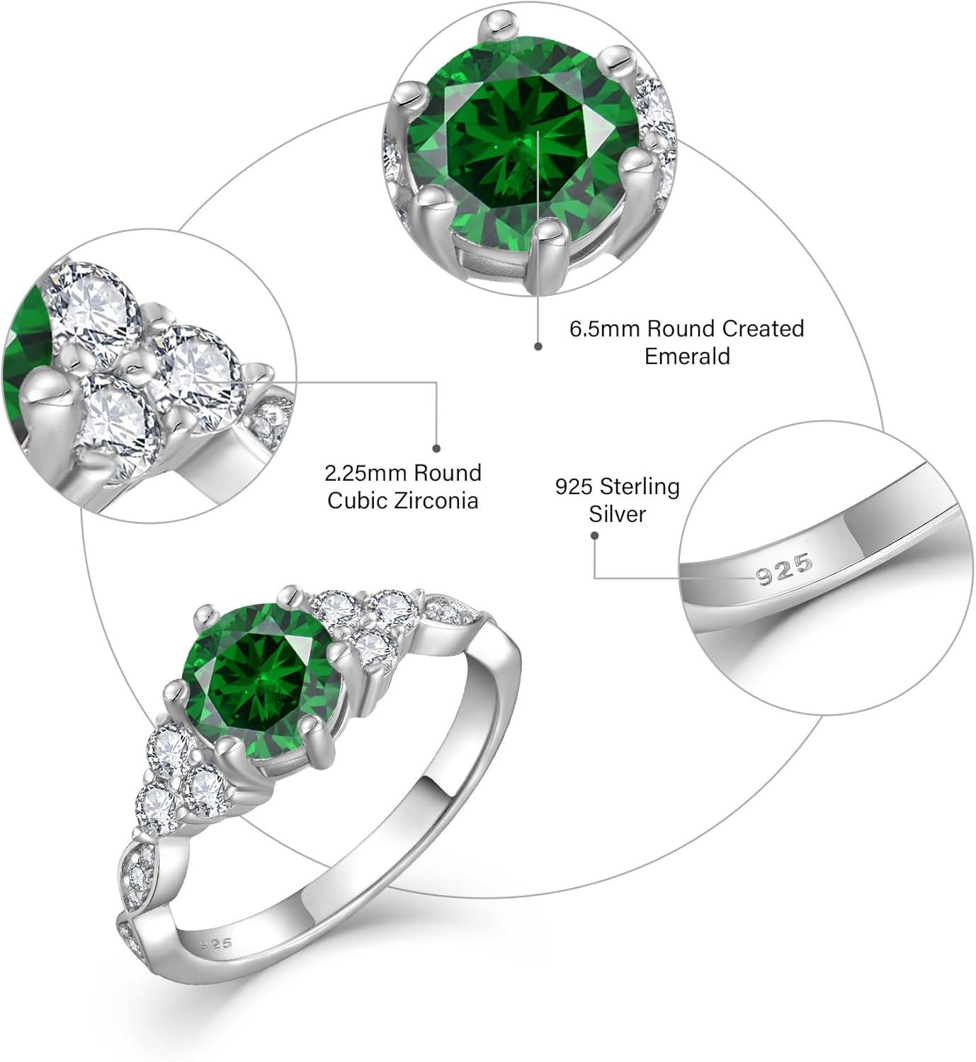 Engagement Ring for Women 925 Sterling Silver Promise Wedding Anniverasry Eternity Ring for Her Size 5-10(05 May – Emerald)