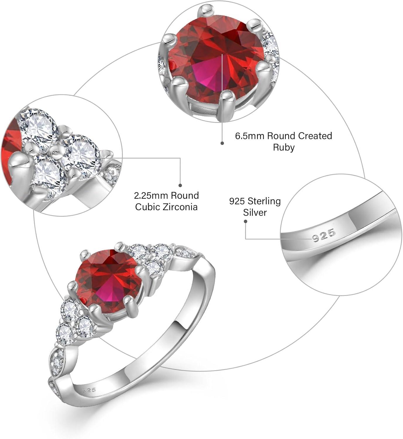 Engagement Ring for Women 925 Sterling Silver Promise Wedding Anniverasry Eternity Ring for Her Size 5-10(07 July – Ruby)