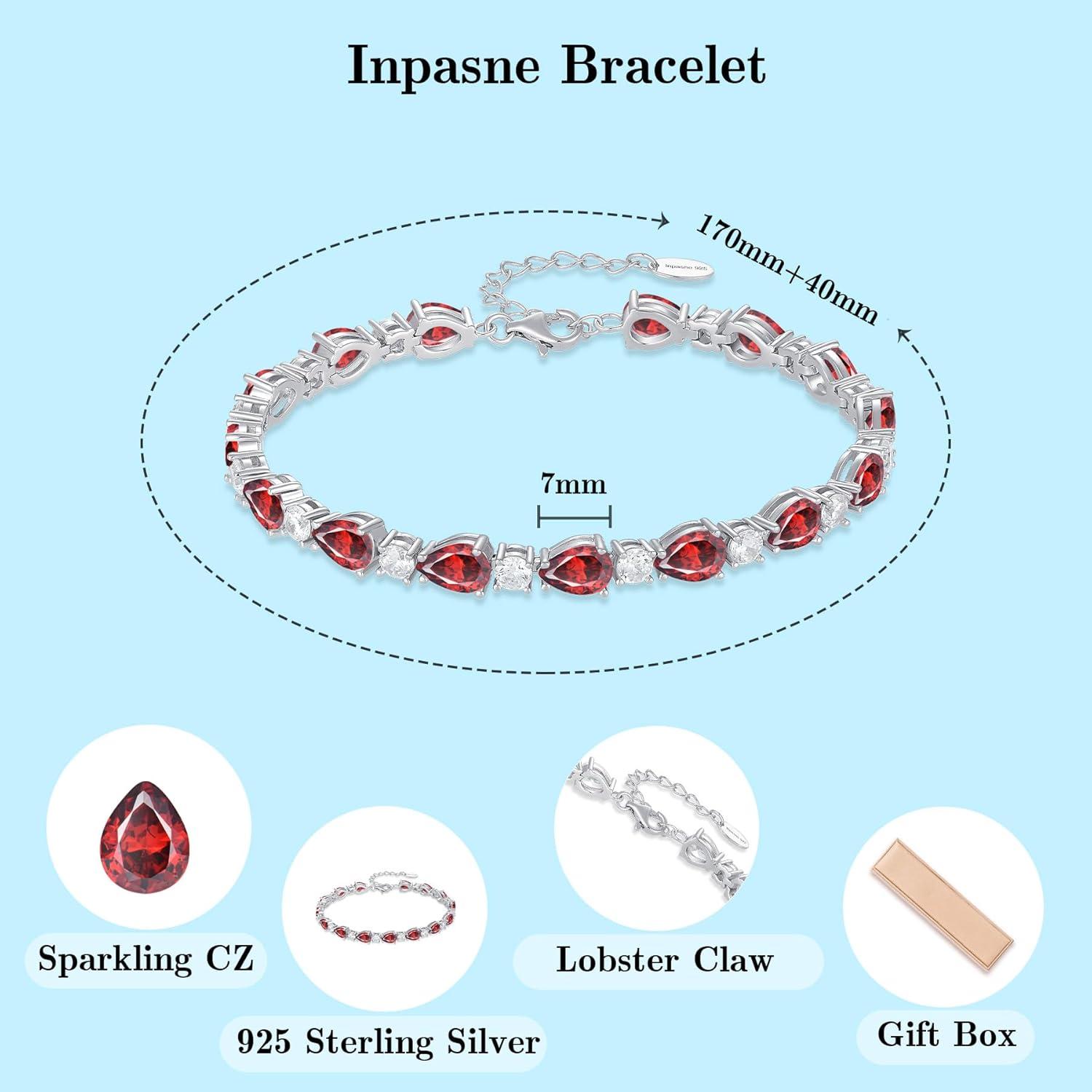 Garnet Jewelry Set 925 Sterling Silver Pear Shaped January Birthstone Earrings Necklace Bracelet Jewelry Gifts for Women