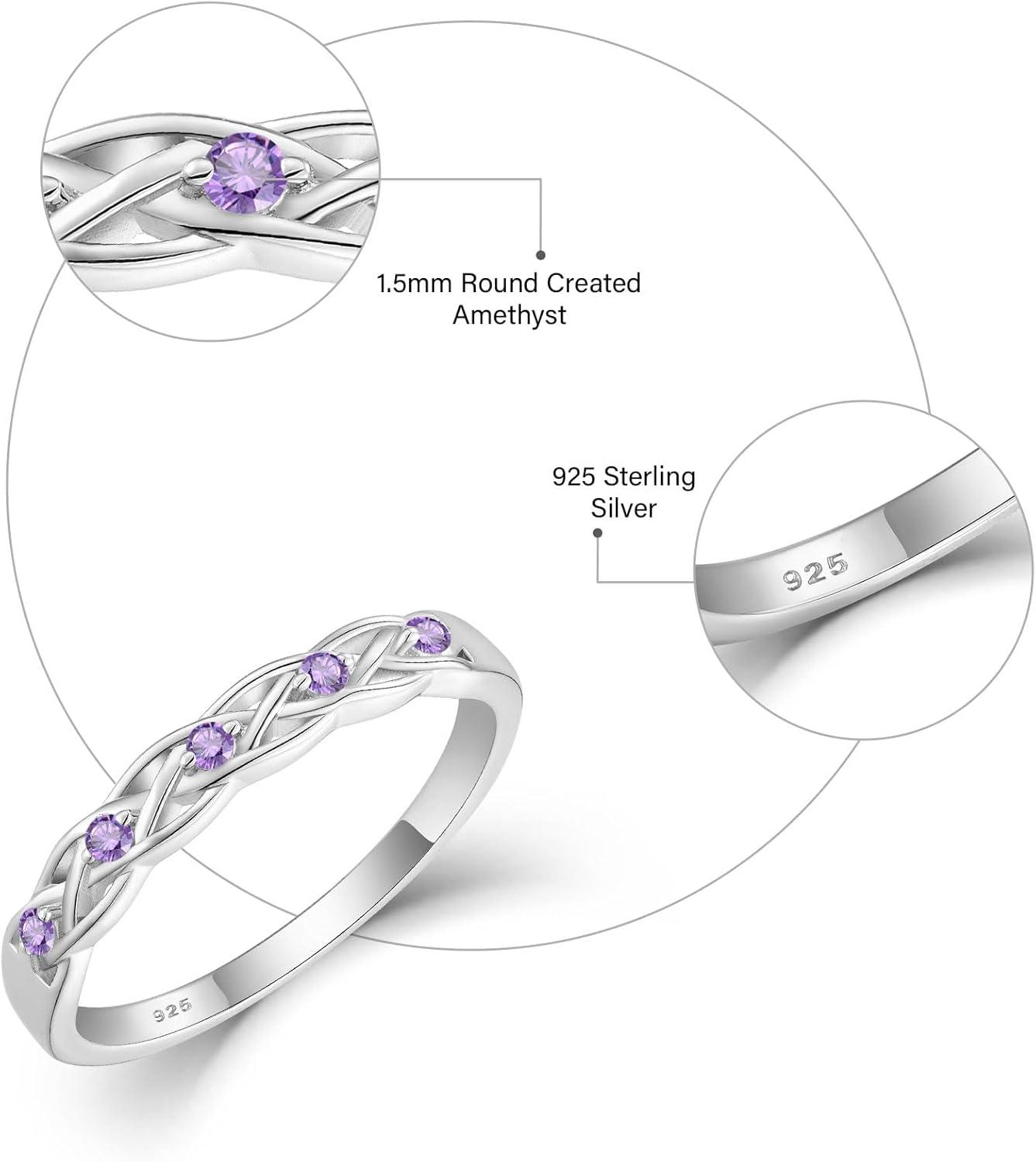 Infinity Celtic Knot Ring 925 Sterling Silver Twisted Knot Birthstone Ring Statement Rings for Women Size 5-10(03 February – Amethyst)