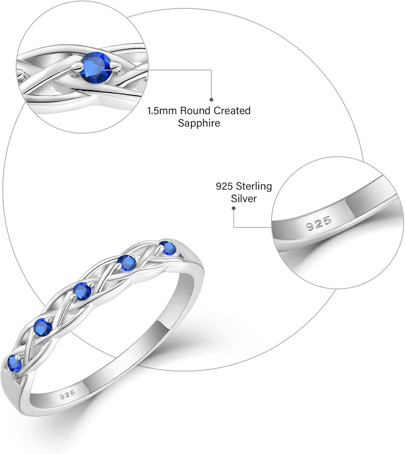 Infinity Celtic Knot Ring 925 Sterling Silver Twisted Knot Birthstone Ring Statement Rings for Women Size 5-10(09 September – Sapphire)