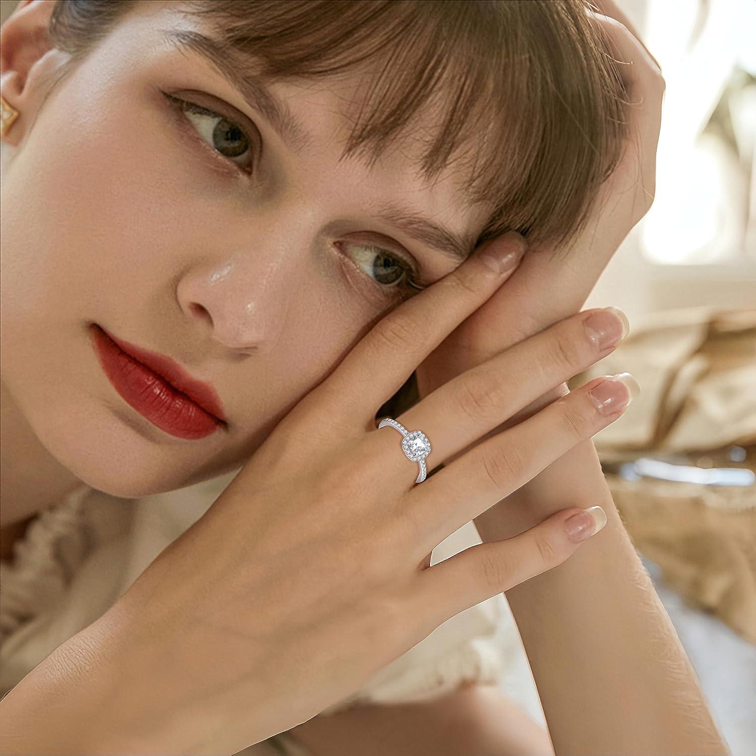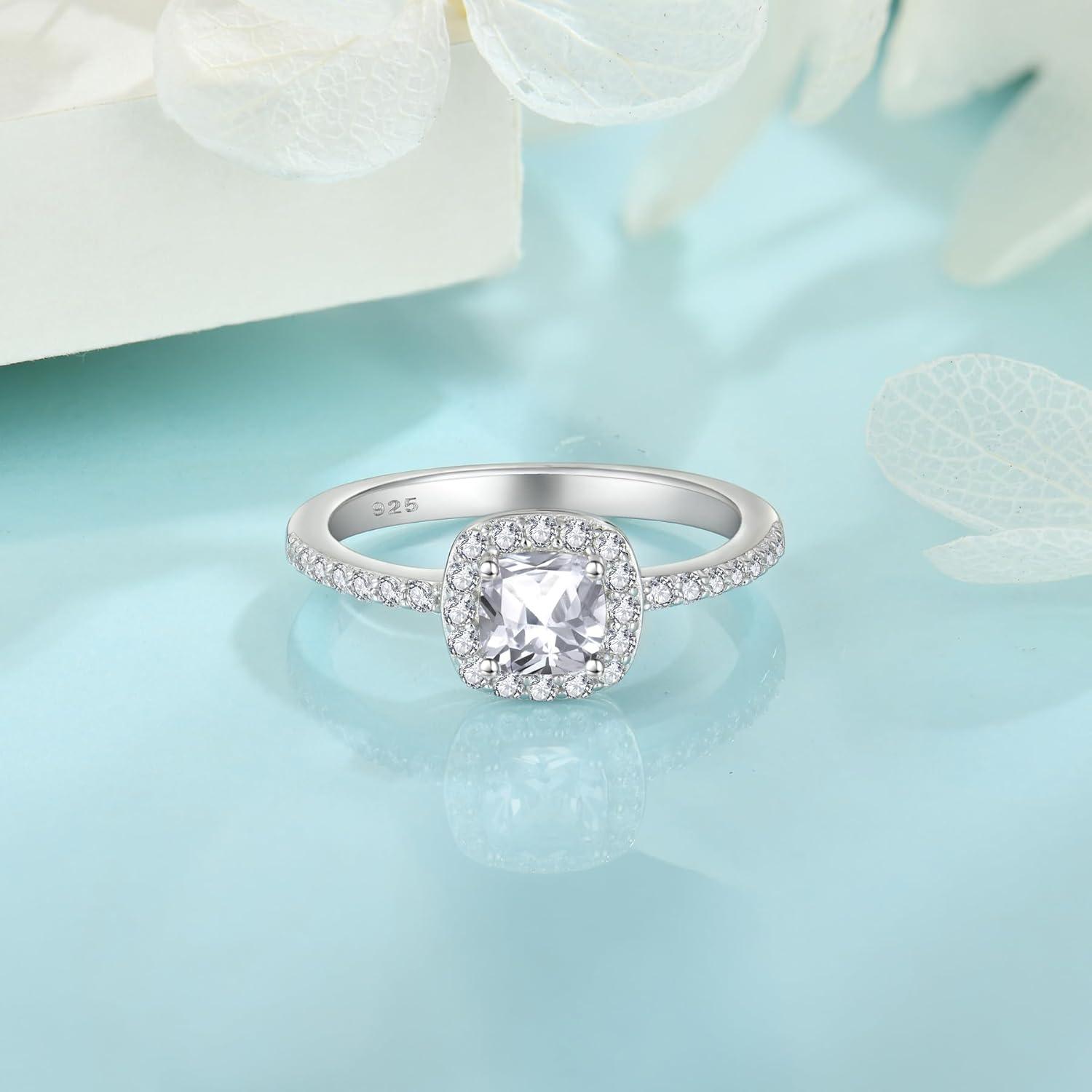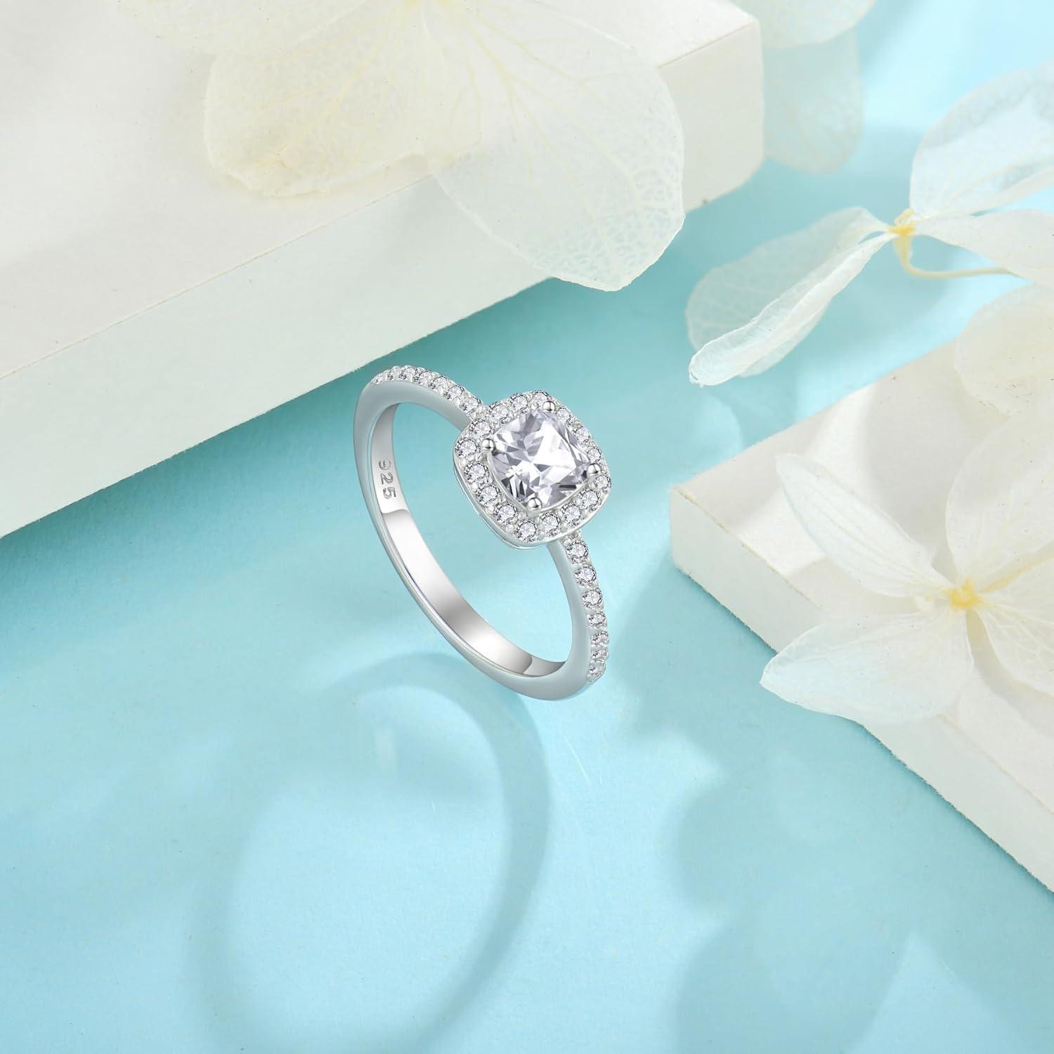 Promise Ring for Women 925 Sterling Silver Princess Cut Halo Birthstone Ring for Her Brides Wife Size 5-10(04 April – Zirconia)