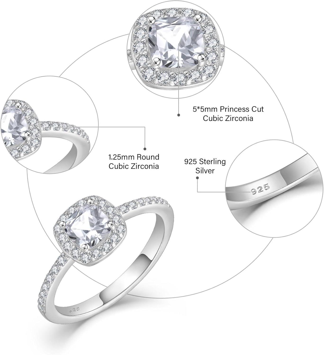 imagePromise Ring for Women 925 Sterling Silver Princess Cut Halo Birthstone Ring for Her Brides Wife Size 51004 April  Zirconia