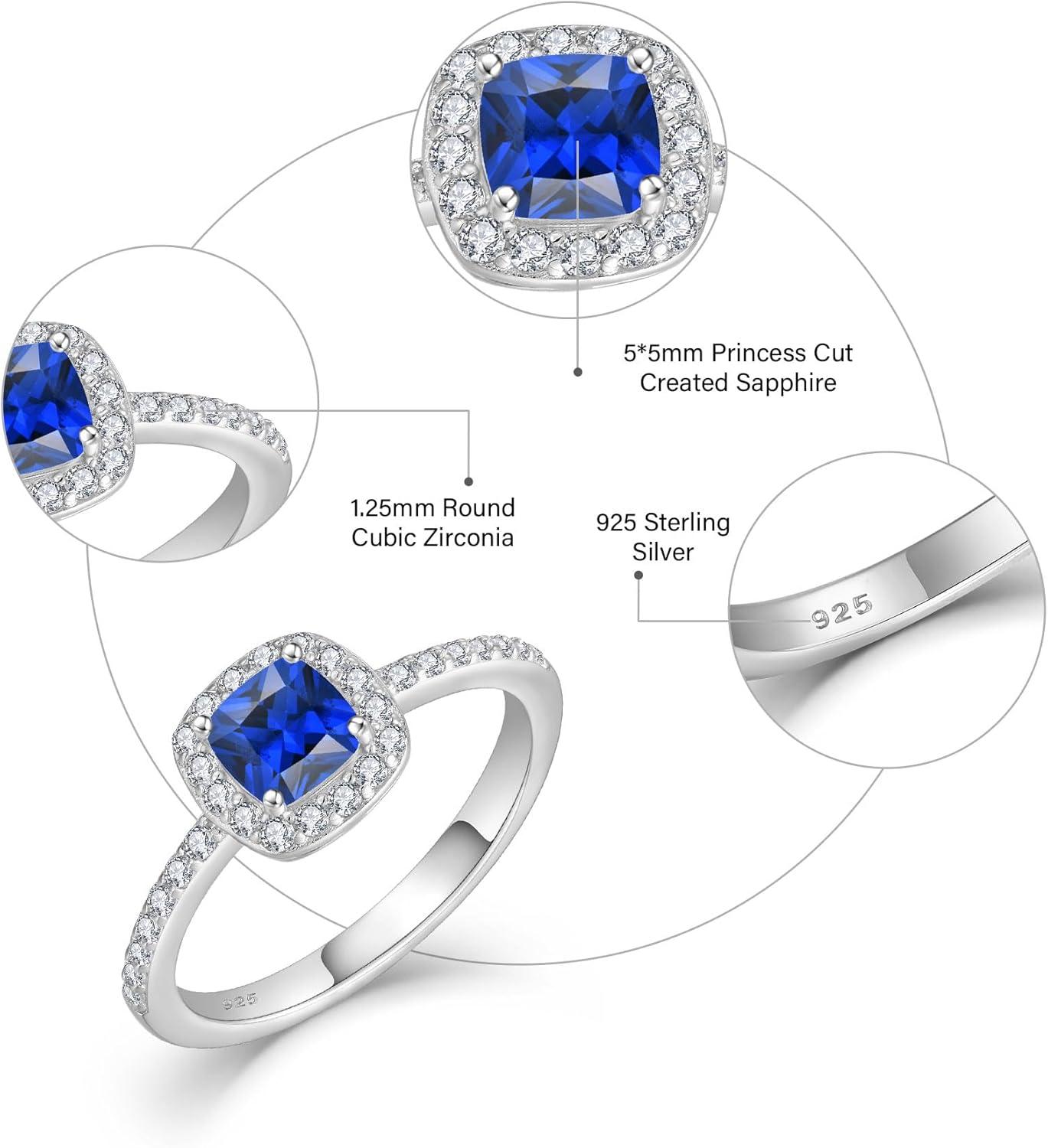 imagePromise Ring for Women 925 Sterling Silver Princess Cut Halo Birthstone Ring for Her Brides Wife Size 51009 September  Sapphire