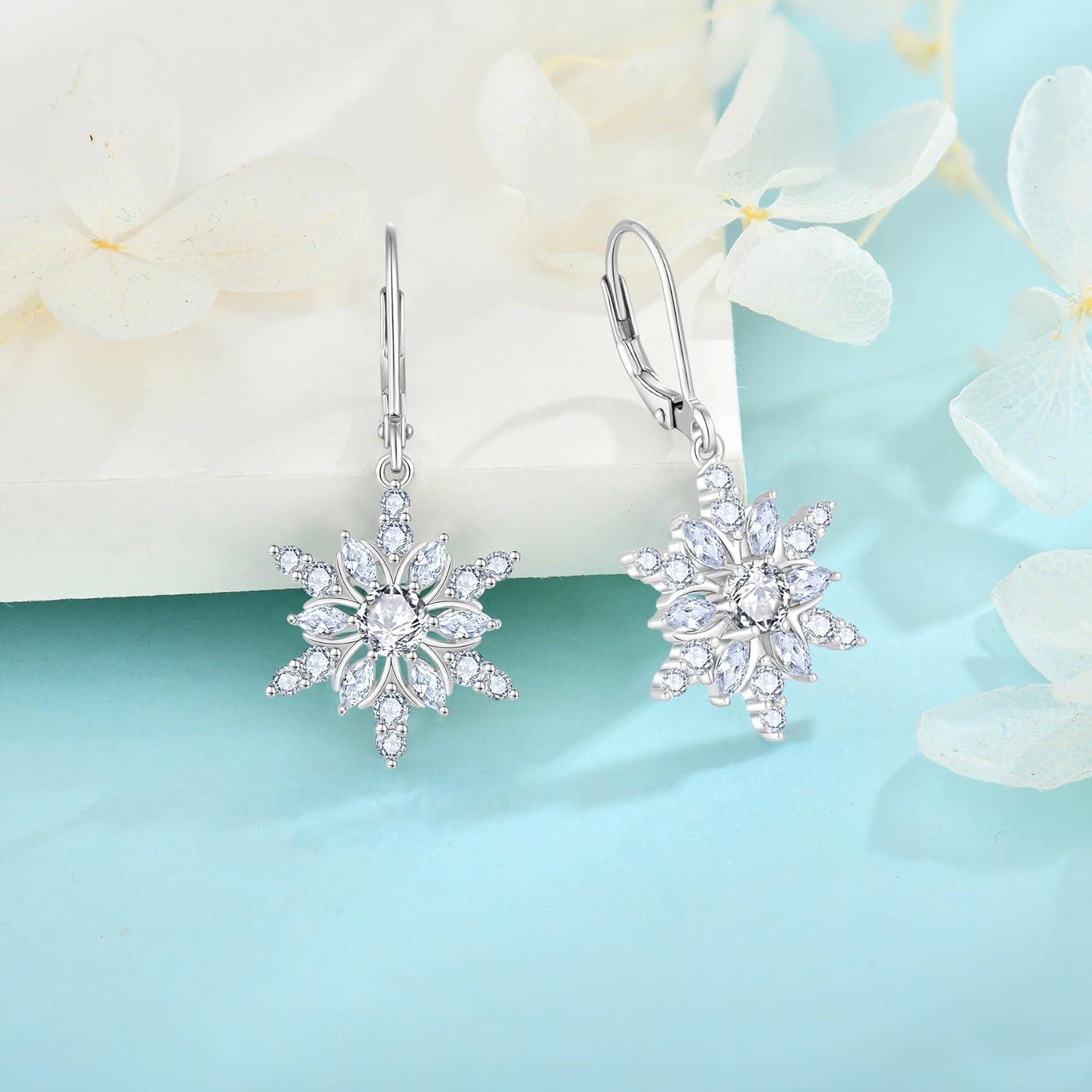 imageSnowflake Earrings for Women 925 Sterling Silver Christmas Earrings Dangle Drop Leverback Birthstone Jewelry Gifts for Her04 April  Zirconia