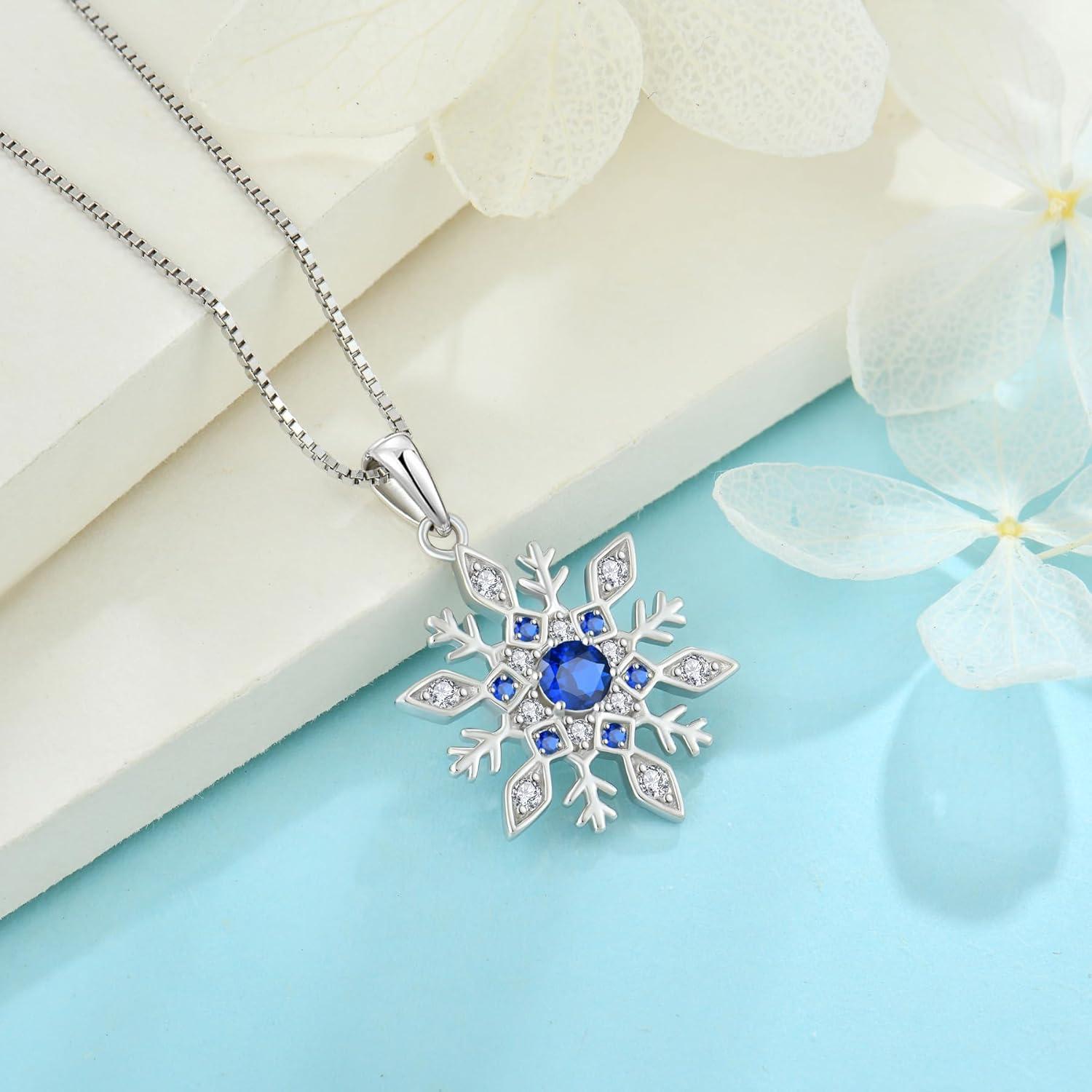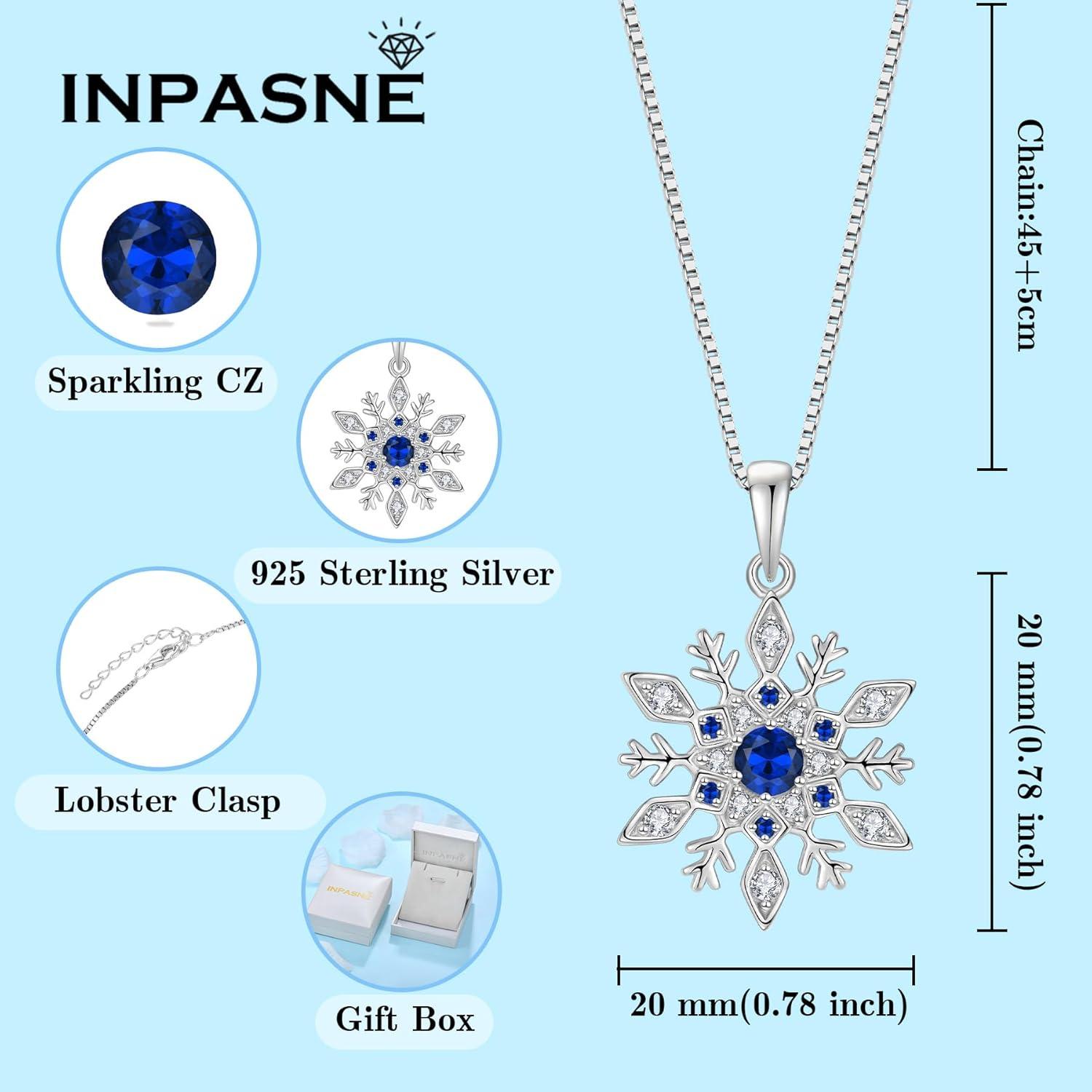 Inpasne Snowflake Necklace Earrings 925 Sterling Silver Sapphire September Birthstone Jewelry Set Christmas Gifts for Her