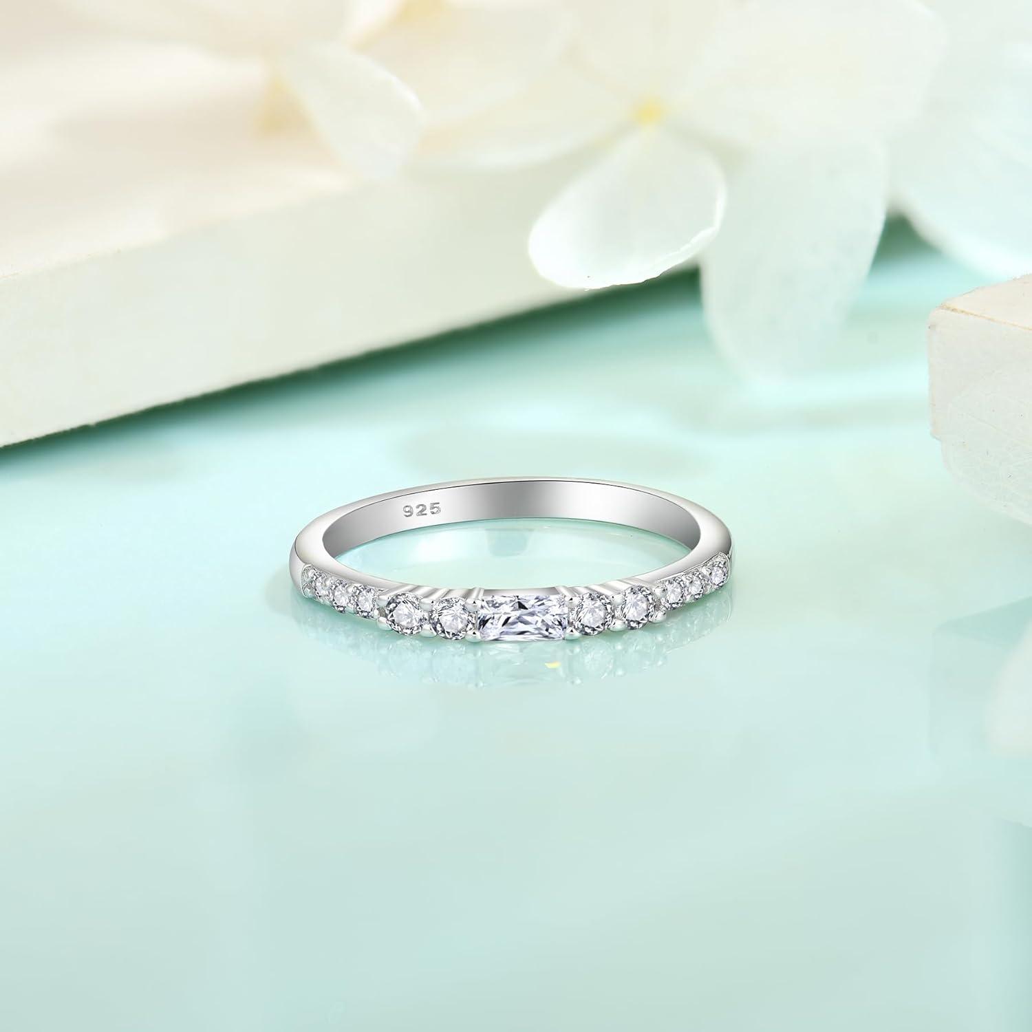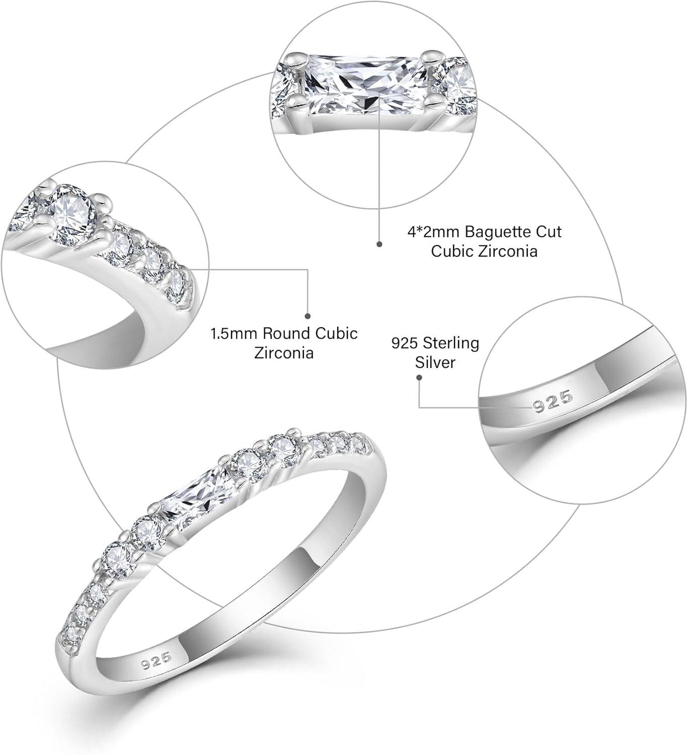 Stackable Eternity Ring for Women 925 Sterling Silver Baguette Cut Birthstone Ring for Her Size 5-10(04 April – Zirconia)