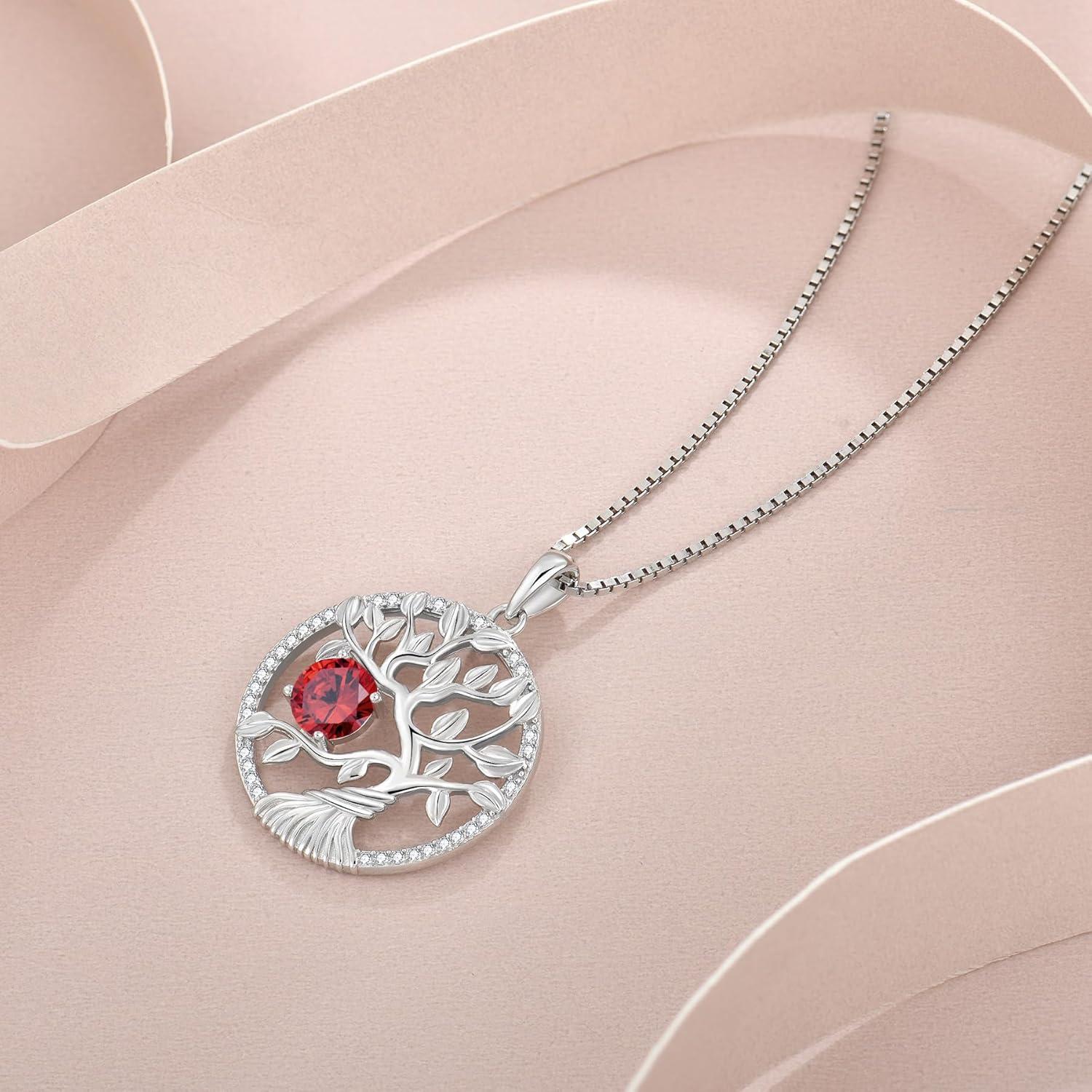 Tree of Life Necklace 925 Sterling Silver Family Tree Pendant Birthstone Jewelry Gifts for Women(01 January – Garnet)