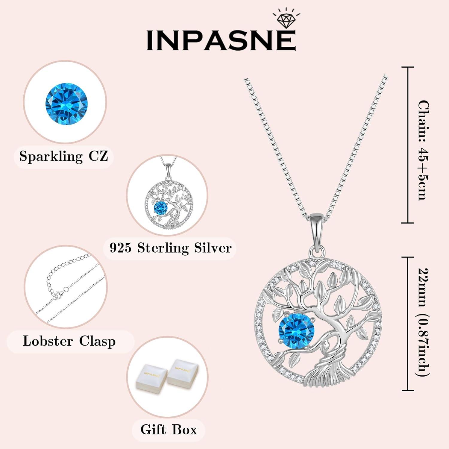 imageTree of Life Necklace 925 Sterling Silver Family Tree Pendant Birthstone Jewelry Gifts for Women03 March  Aquamarine
