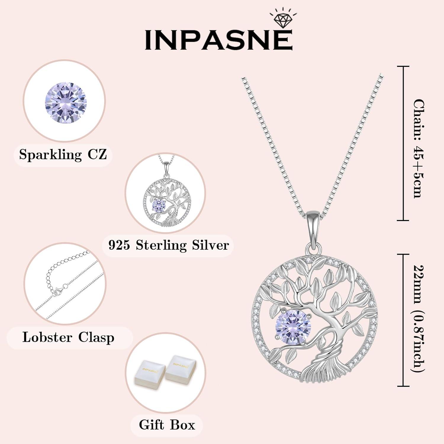 Tree of Life Necklace 925 Sterling Silver Family Tree Pendant Birthstone Jewelry Gifts for Women(06 June - Alexandrite)