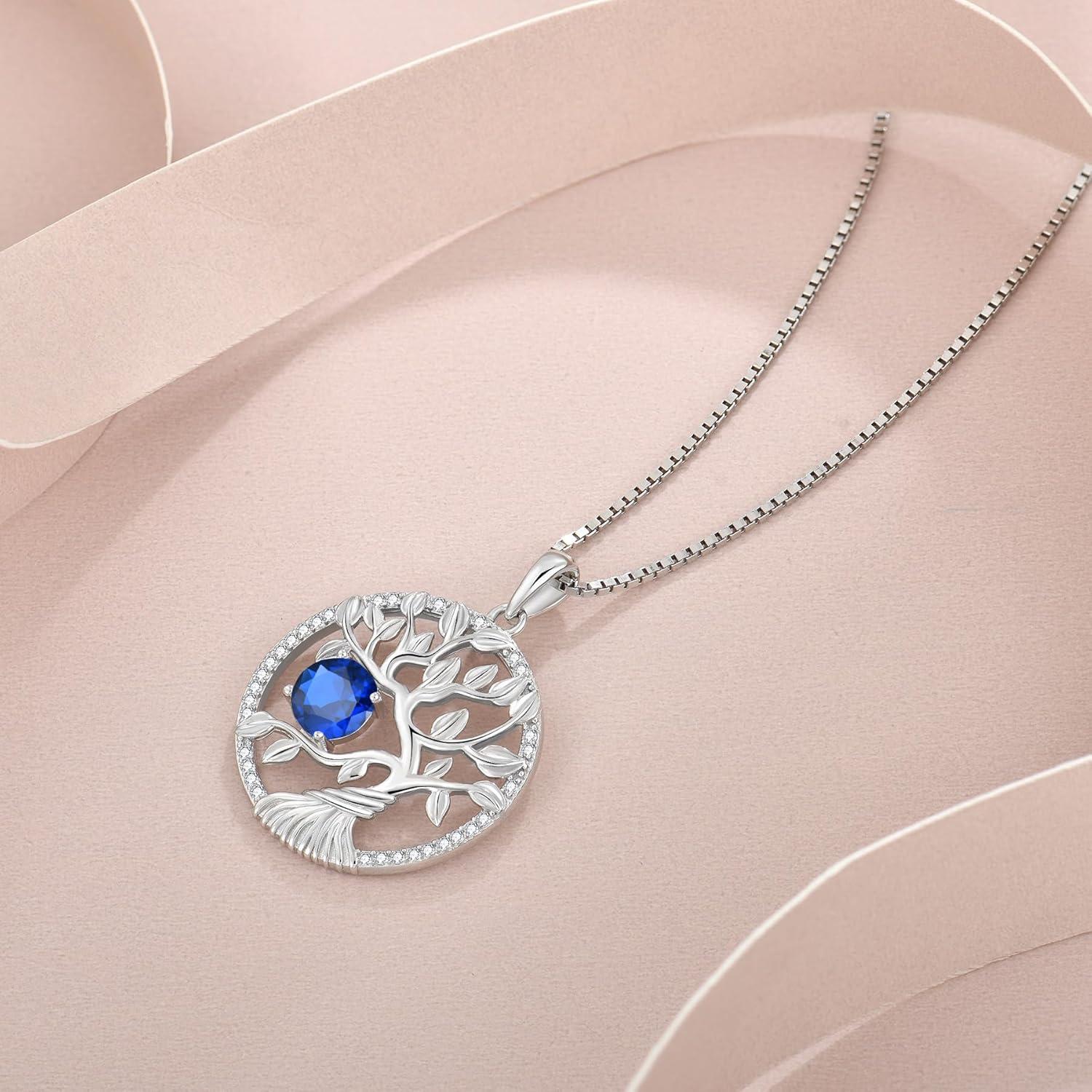 imageTree of Life Necklace 925 Sterling Silver Family Tree Pendant Birthstone Jewelry Gifts for Women09 September  Sapphire