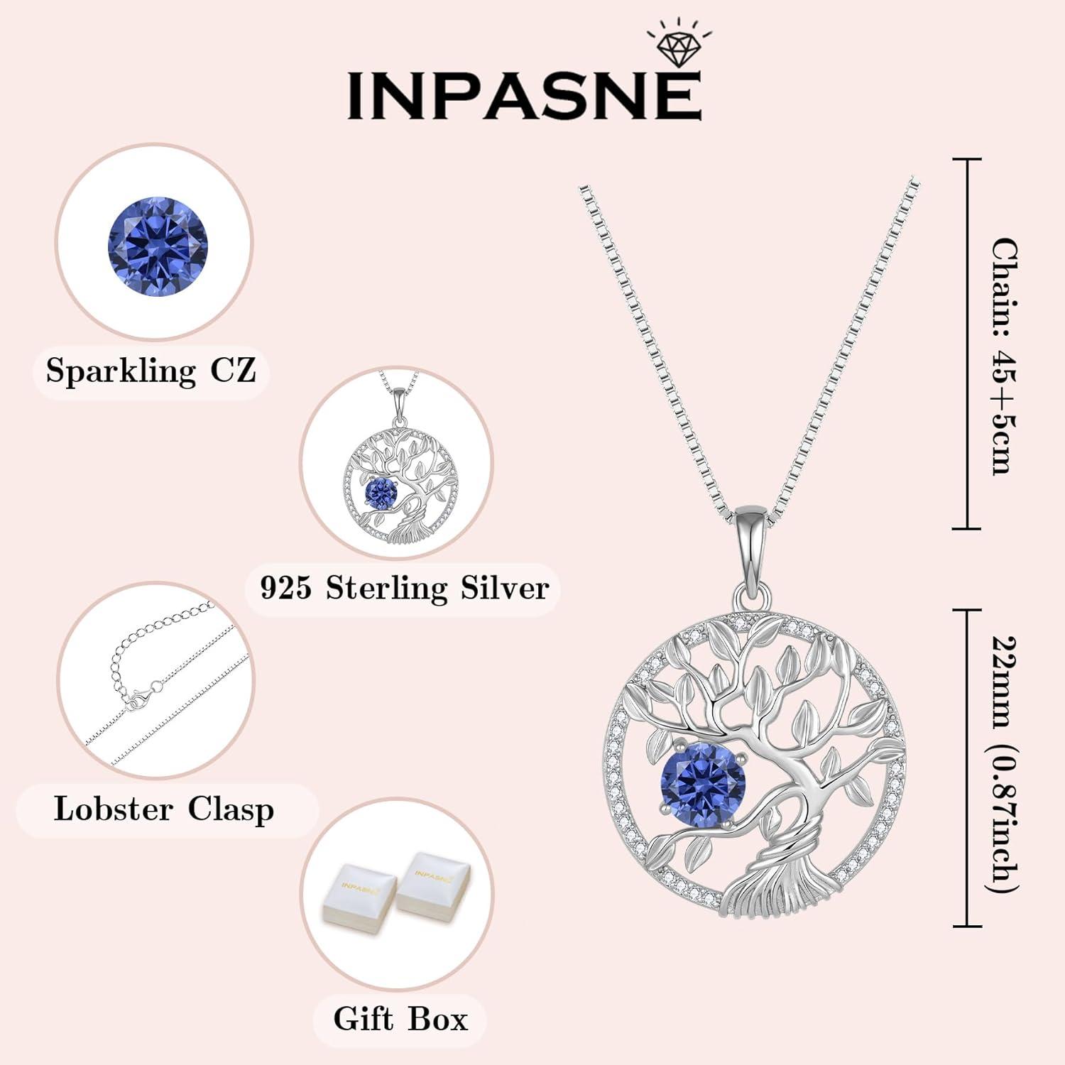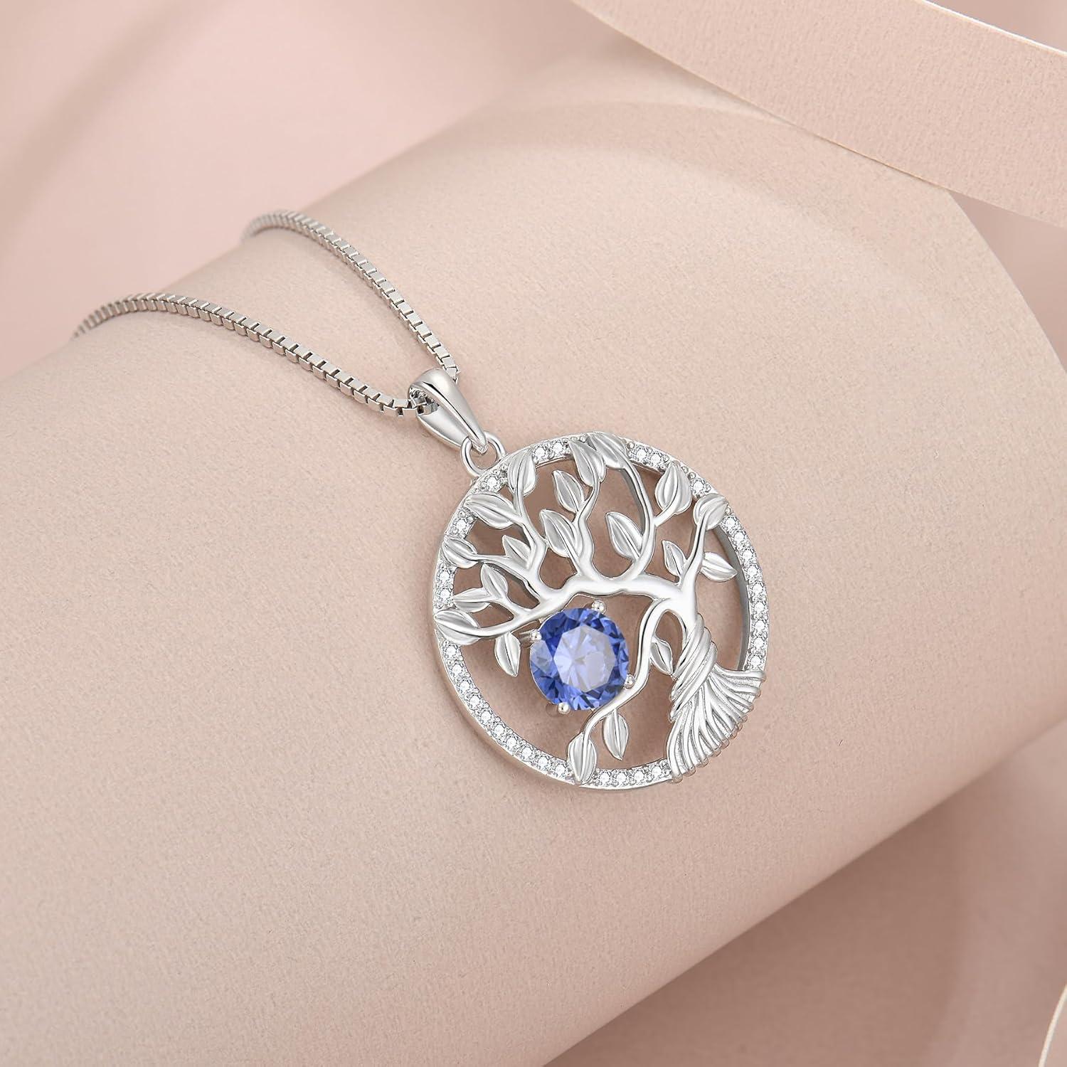 Tree of Life Necklace 925 Sterling Silver Family Tree Pendant Birthstone Jewelry Gifts for Women(12 December – Tanzanite)